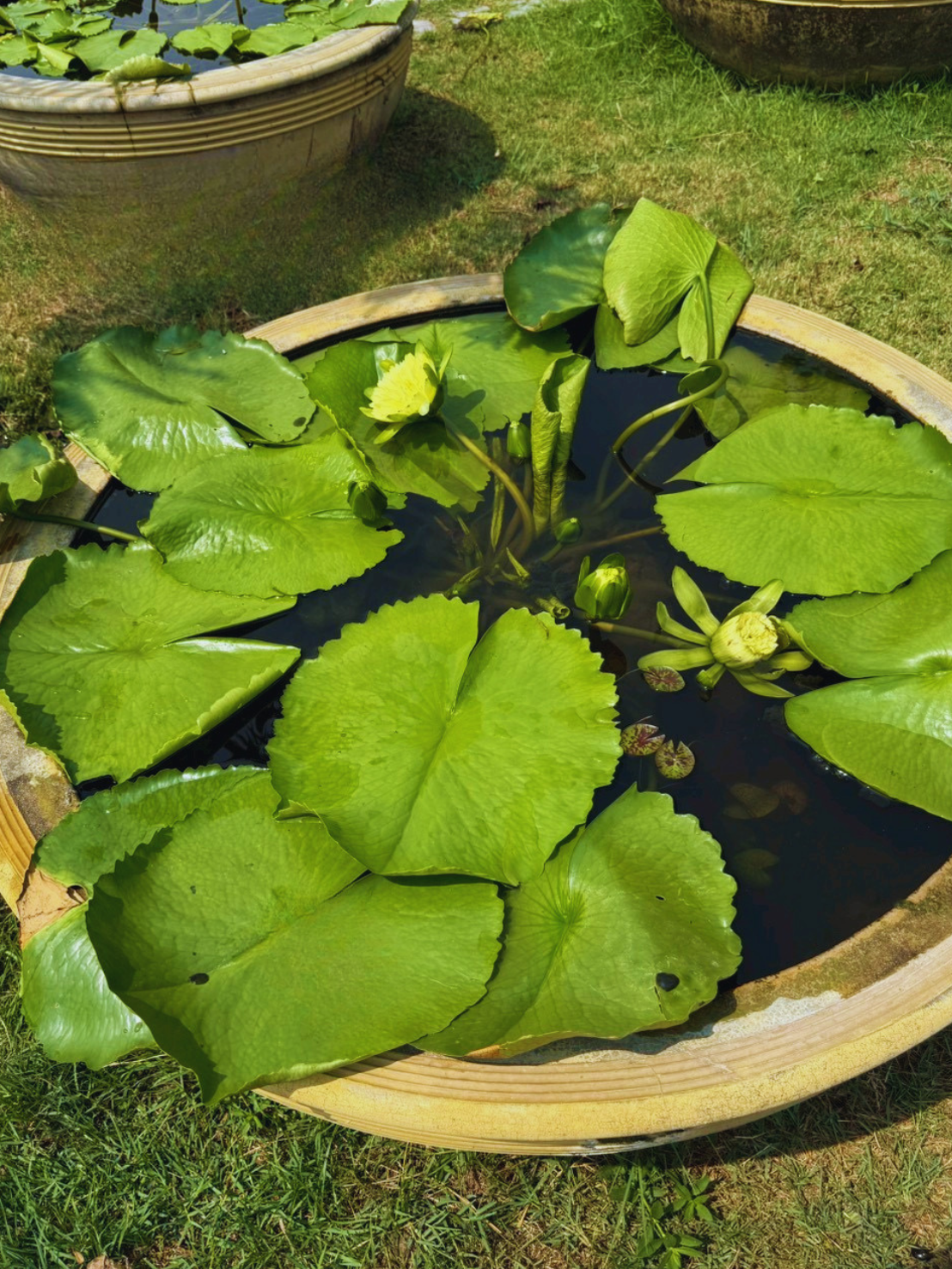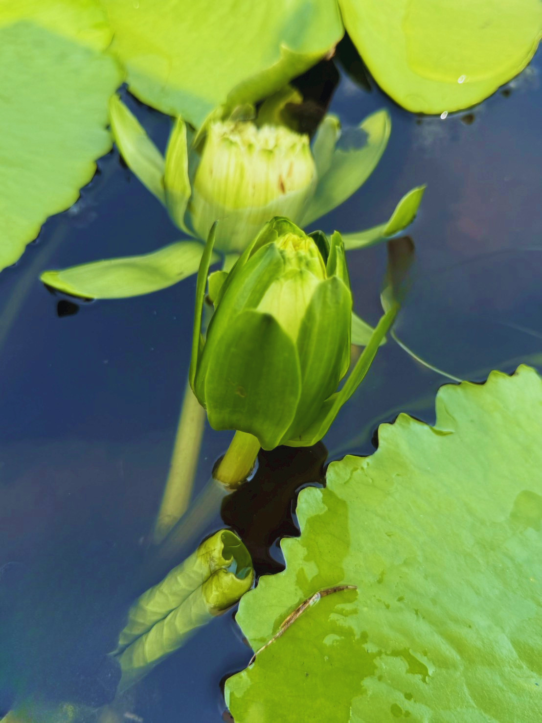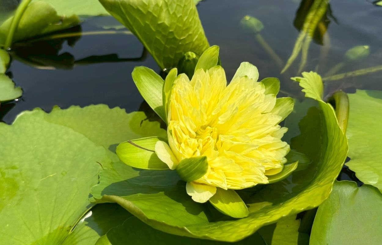 แผ่นใบลอยบนผิวน้ำมีรูปไข่ ปลายใบมน ฐานใบเปิด ขอบใบจักไม่เป็นระเบียบ ปลายฐานใบแหลมเป็นจะงอย